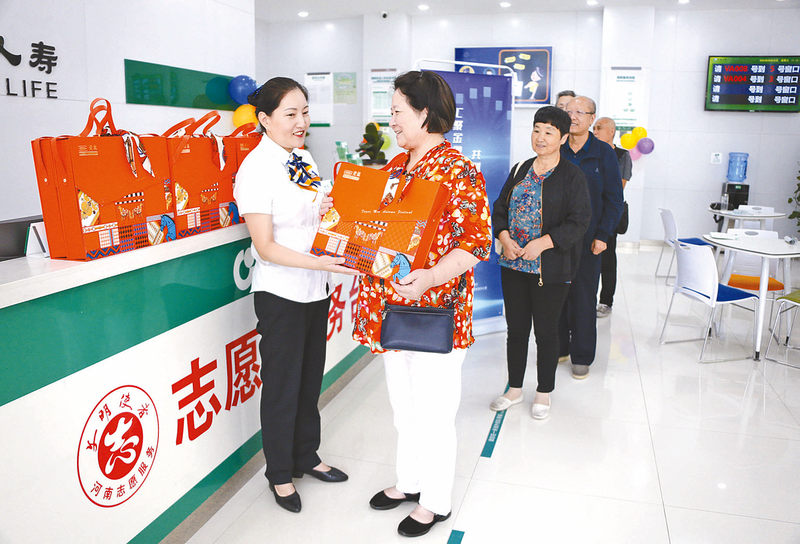 9月22日,中国人寿驻马店分公司组织所辖11家柜面开展“月圆中秋 情浓国寿”中秋、国庆双节乐翻天回馈客户活动。
