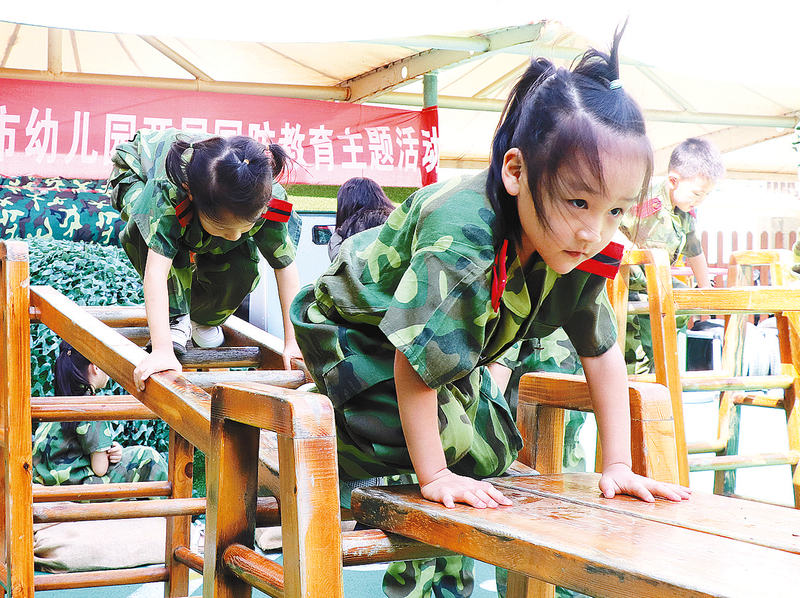近日,市幼儿园开展以“童心系国防 共筑强军梦”为主题的国防教育系列活动,让国防教育的强军思想深入幼儿心中,激发幼儿的爱国情感,增强幼儿克服困难、不畏艰险的精神,锻炼幼儿顽强的意志,将国防教育和爱国主义融入心田。