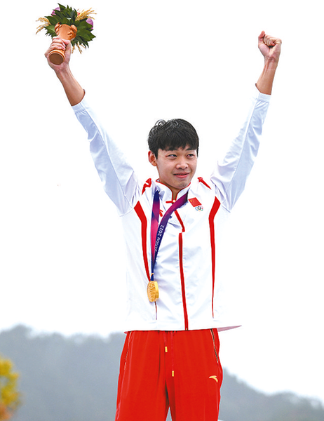 10月7日,冠军中国选手张子扬在颁奖仪式上。