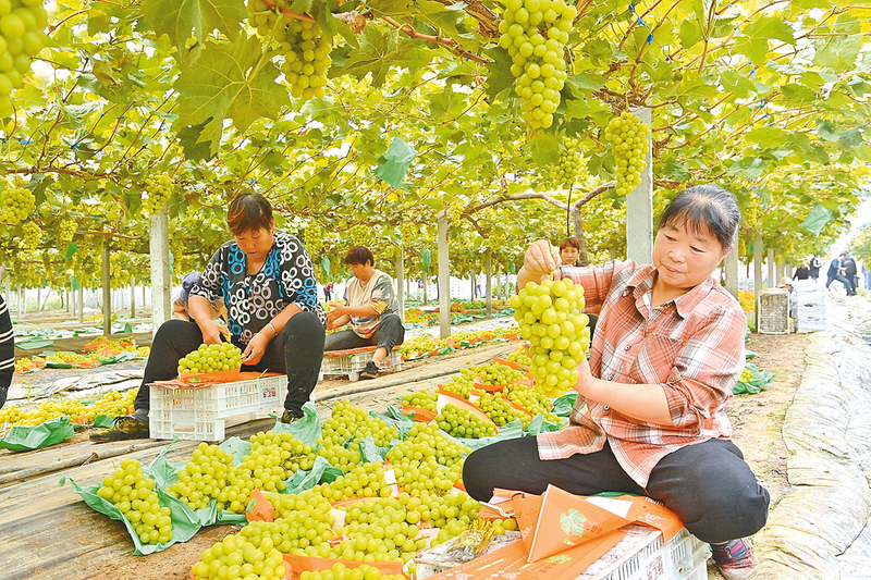 锦屏山下、倒流河畔,一 面环山、一面环水的萧县张村是远近闻名的“葡萄之乡”。采风团对萧县葡萄赞不绝口。