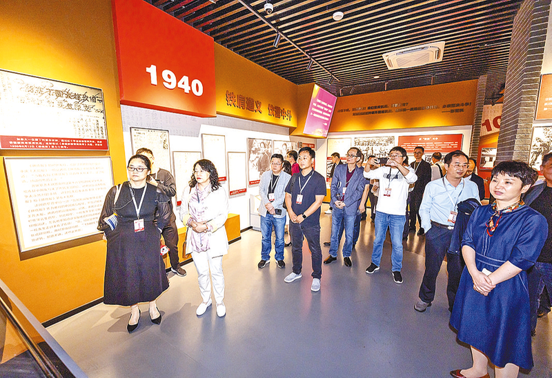 9月25日上午,采风团一行前往《拂晓报》报史馆采风。《拂晓报》报史馆总面积约1600平方米,设立序厅、初心厅、发展厅、辉煌厅等4个展厅,全景式展现了彭雪枫将军和一代代拂晓报人用心血汗水换来的非凡成就。大家漫步在馆内认真聆听讲解,追忆历史瞬间,重温拂晓精神,感受沧桑巨变。