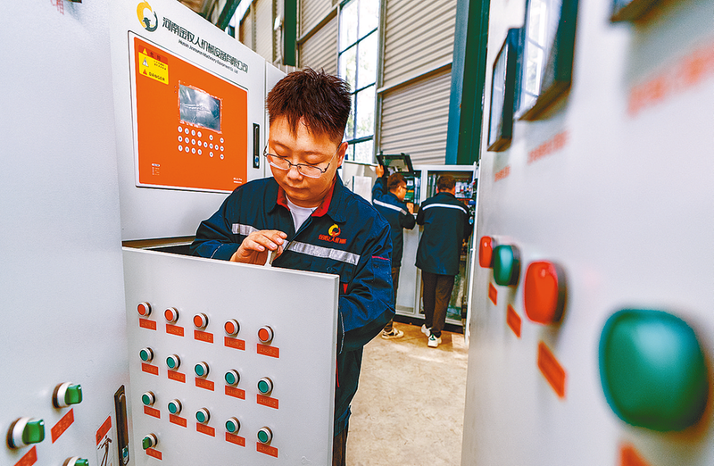 10月9日,在位于西平县的河南金牧人机械设备有限公司生产车间里,工人正铆足干劲赶制订单。
