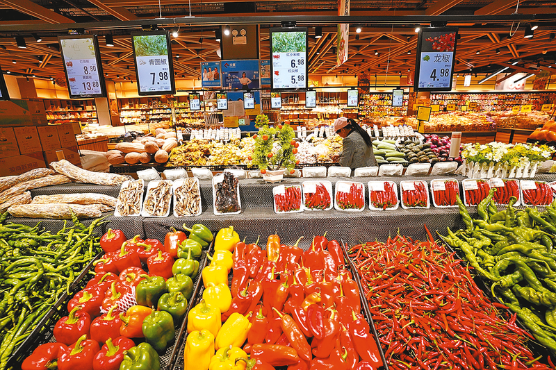10月13日,顾客在湖南省怀化市通道侗族自治县一家生活超市选购蔬菜。