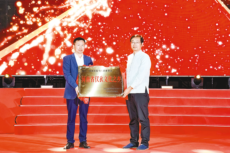 此次活动,还举行了“河南省仪狄文化之乡”命名授牌仪式。中国书法家协会副主席毛国典特为“蔡酒文化节”赠送“中国酒祖仪狄文化之乡”墨宝。