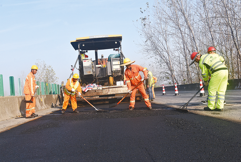 现场施工精益求精,碾压后路面焕然一新。 本报记者 张新理 张 勇 文/图