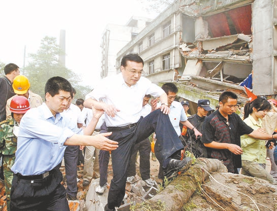 2008年5月19日,李克强同志在四川地震灾区察看灾情。 新华社记者 兰红光 摄