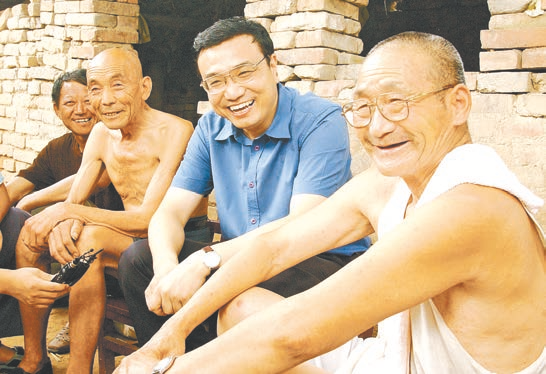 2003年8月 8日,李克强同志在河南省新乡市调研。这是李克强同志在原阳县桥北乡马庄村与村民亲切交谈。 郭 宇 摄(新华社发)