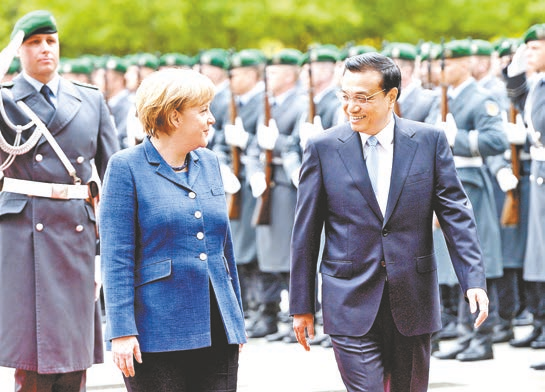 2013年5月26日,李克强同志在柏林出席德国总理默克尔举行的欢迎仪式。 新华社记者 马占成摄