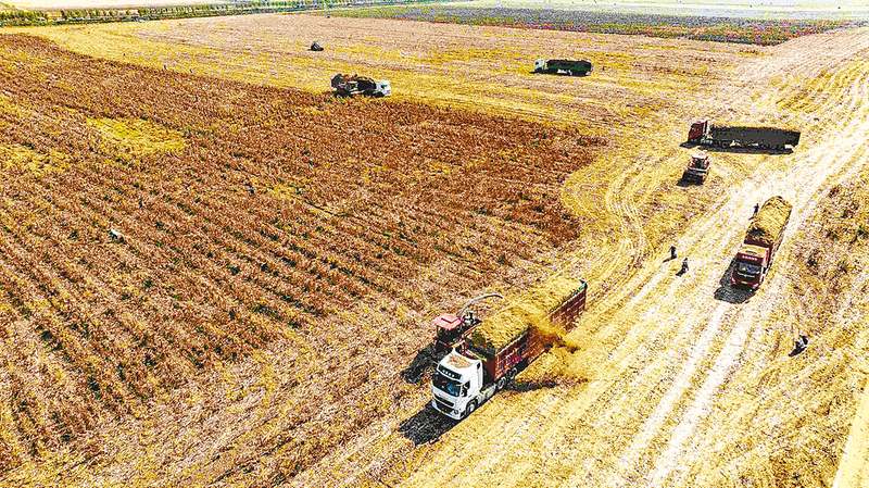 近日,在西平县老王坡1.1万亩高标准农田,一辆辆农用机械车辆在刚刚收获过的玉米、高粱地里往返穿梭将秸秆粉碎、装车,运往发电厂,使原本没有经济价值的秸秆变成了“抢手货”。