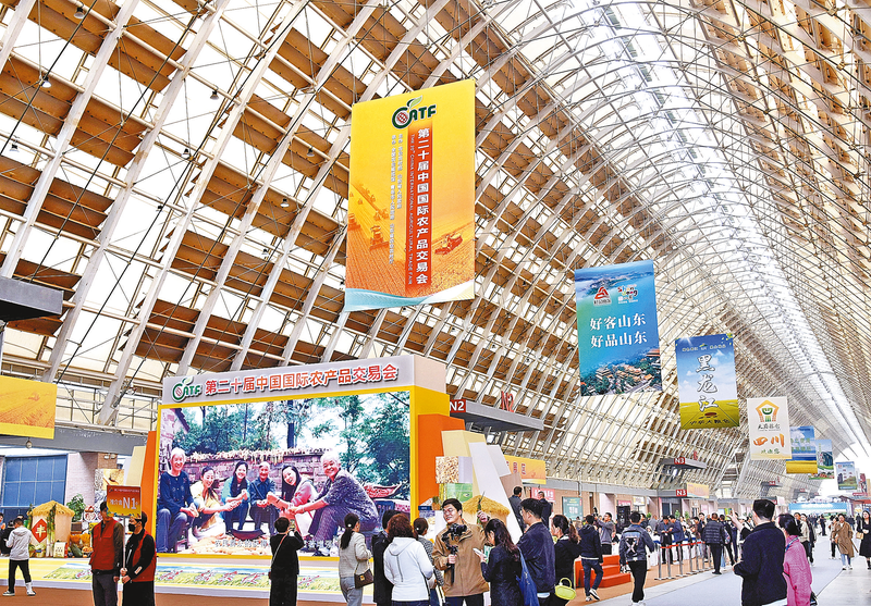这是11月9日拍摄的第二十届中国国际农产品交易会现场。当日,第二十届中国国际农产品交易会在山东省青岛市开幕,近3000家企业携2万多种展品参展,吸引各地专业采购商逾3万人参加。本届农交会由农业农村部、山东省人民政府共同主办,以“奋进新征程、强农促振兴”为主题,设置了粮油、果蔬、水产等11个展区。