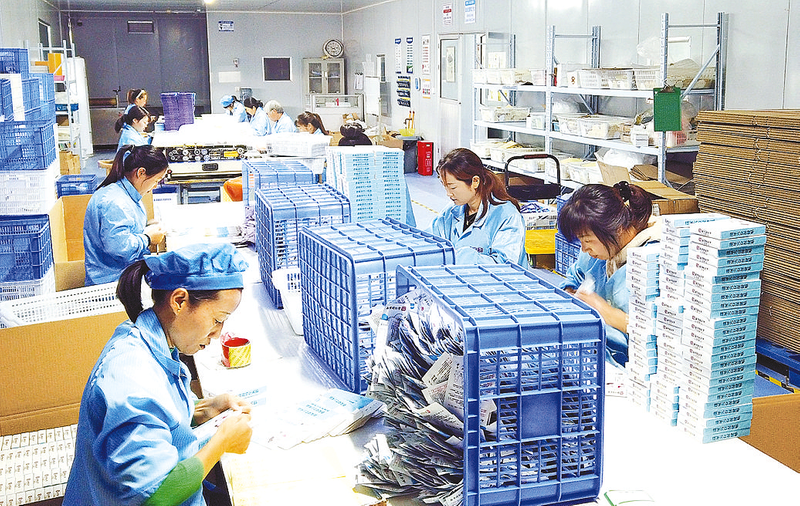 11月7日,位于确山县竹沟镇肖庄村的爱必励健康产业有限公司的工人正在生产车间加工南京同仁堂的艾贴订单产品。该公司以艾草为主要原料生产的保健品深受国内外消费者青睐,并带动竹沟镇1200多户农民种植艾草。