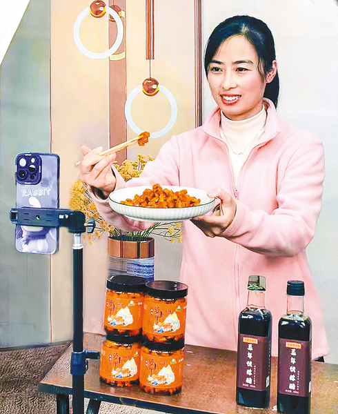 近日,正阳县永兴镇余庄村“豫见李小忆”直播间里,网红李强强的爱人刘静静正在热情推介当地风味小菜——萝卜干。李强强夫妇大学毕业后返乡从事电商直播,拥有80多万粉丝。近年来,夫妻俩通过今日头条、西瓜视频、抖音等平台,把家乡的花生、大豆、玉米等农产品及其加工食品销往全国各地,实现了电商致富梦想,带动当地群众就业增收,推进了农村电商发展。 通讯员 张 华 摄