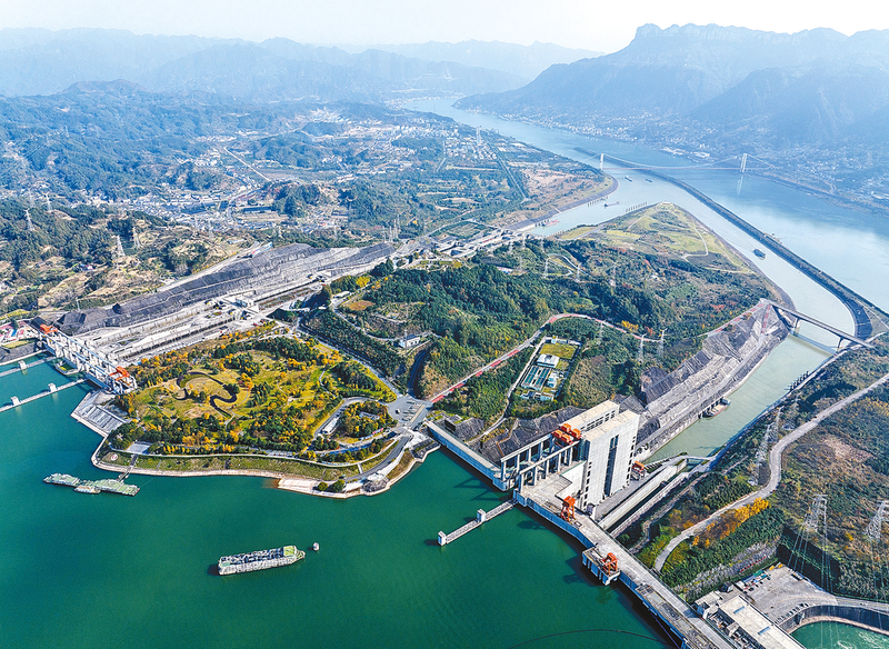 11月24日,在湖北省宜昌市,船舶有序通过三峡船闸和升船机(无人机照片)。当日,记者从交通运输部获悉,截至23日18时,三峡枢纽航运通过量达1.6亿吨,已突破历年最高水平。 新华社发