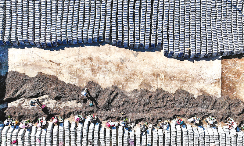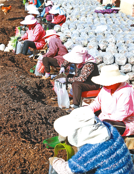 菇农装袋忙