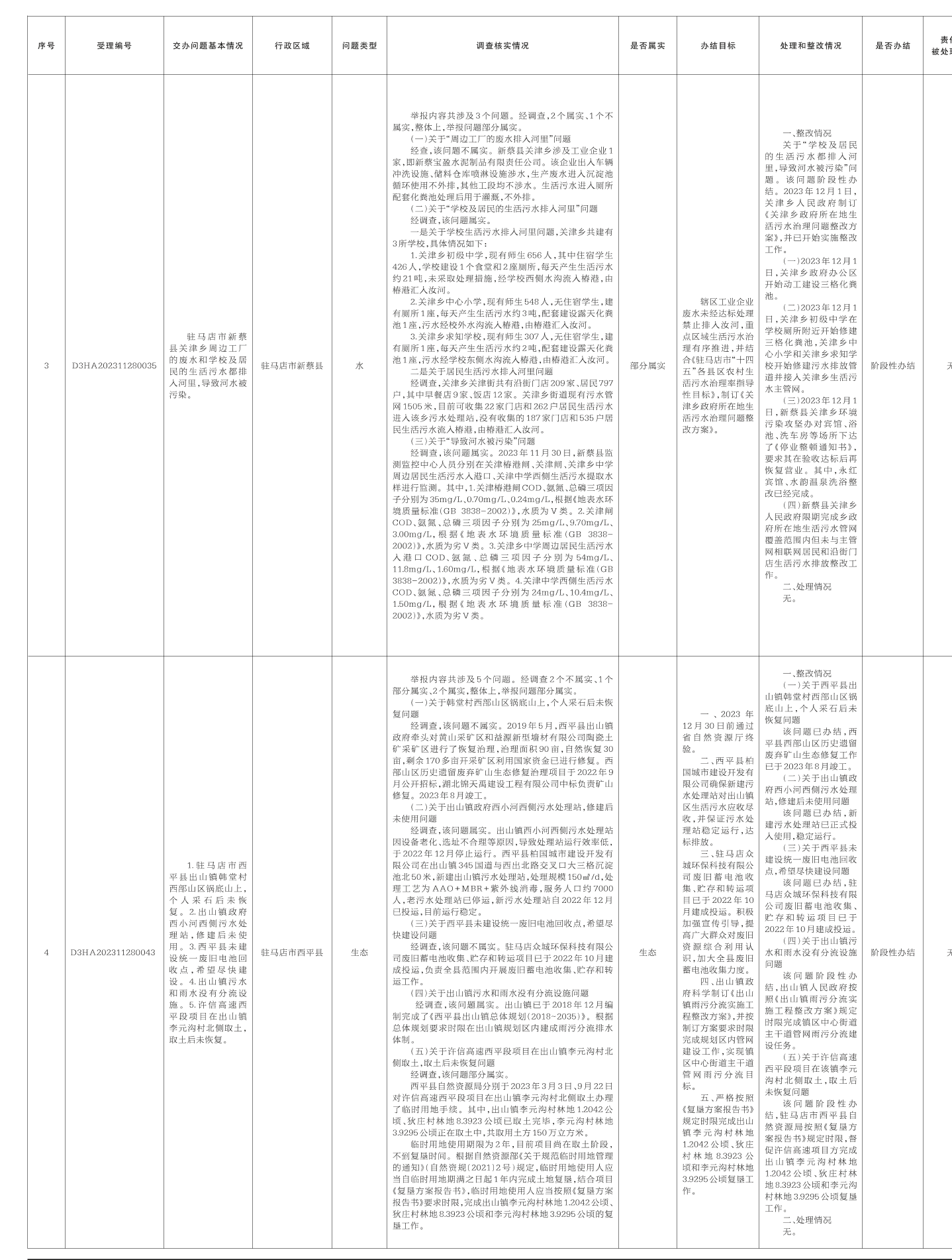 中央生态环境保护督察组群众信访举报转办和边督边改公开情况一览表