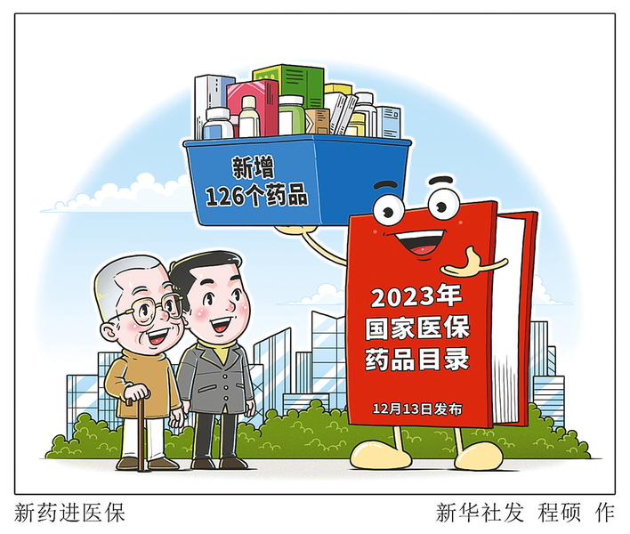 2023年国家医保药品目录12月13日在京发布,此次调整共有126个药品新增进入国家医保药品目录,1个药品被调出目录,谈判或竞价成功的药品价格平均降幅61.7%。新版医保药品目录内药品总数达到3088种,其中西药1698种、中成药1390种;中药饮片仍为892种。 新华社发 程 硕 作