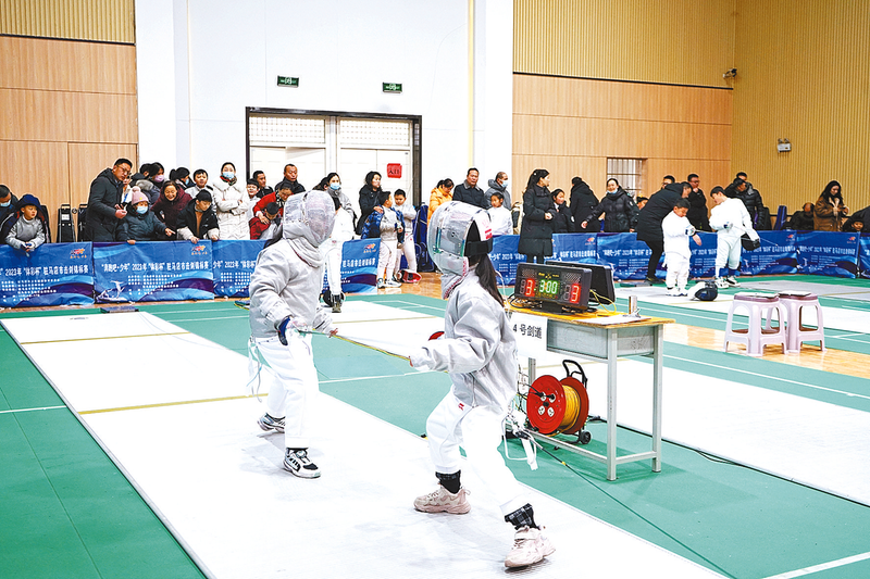 12月16日至17日,由驻马店市卫生健康体育委员会主办,驻马店市击剑协会承办的2023年“奔跑吧·少年”“体彩杯”驻马店市击剑锦标赛在驻马店市第三十三小学举行。图为比赛现场。 本报记者 郭雪峰 摄