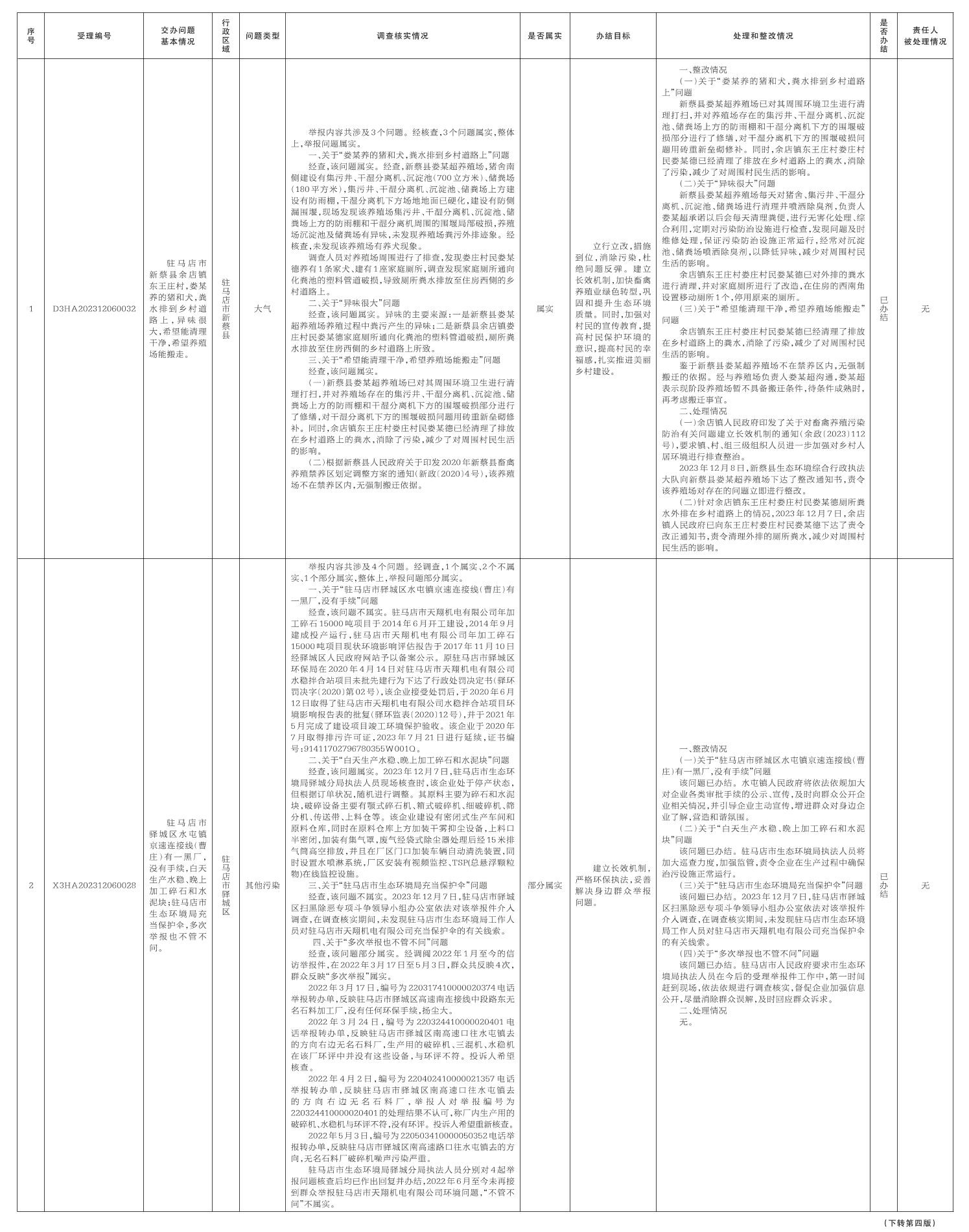 中央生态环境保护督察组群众信访举报转办和边督边改公开情况一览表