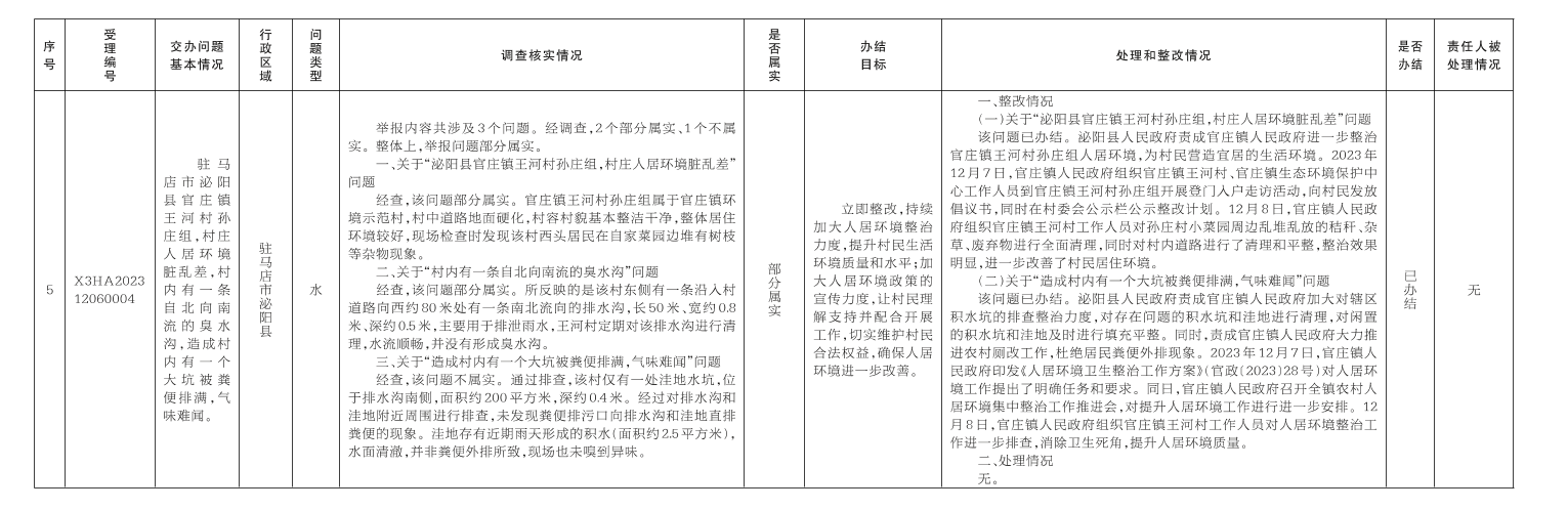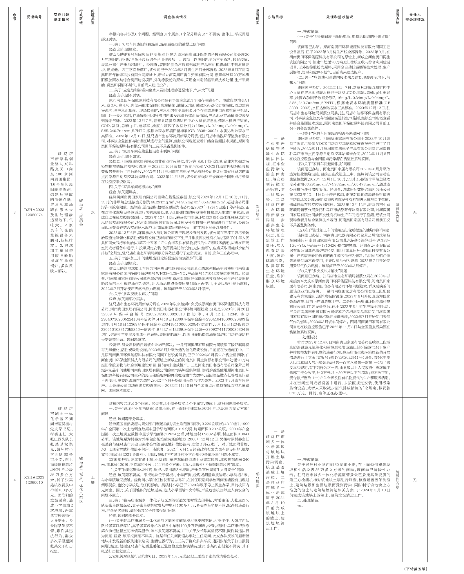 12月7日,中央第二生态环境保护督察组向我市交办第十五批5个群众举报件,截至12月17日,已办结4件,阶段性办结1件,查处和整改情况已按要求进行公开,具体内容请查阅驻马店市人民政府网站