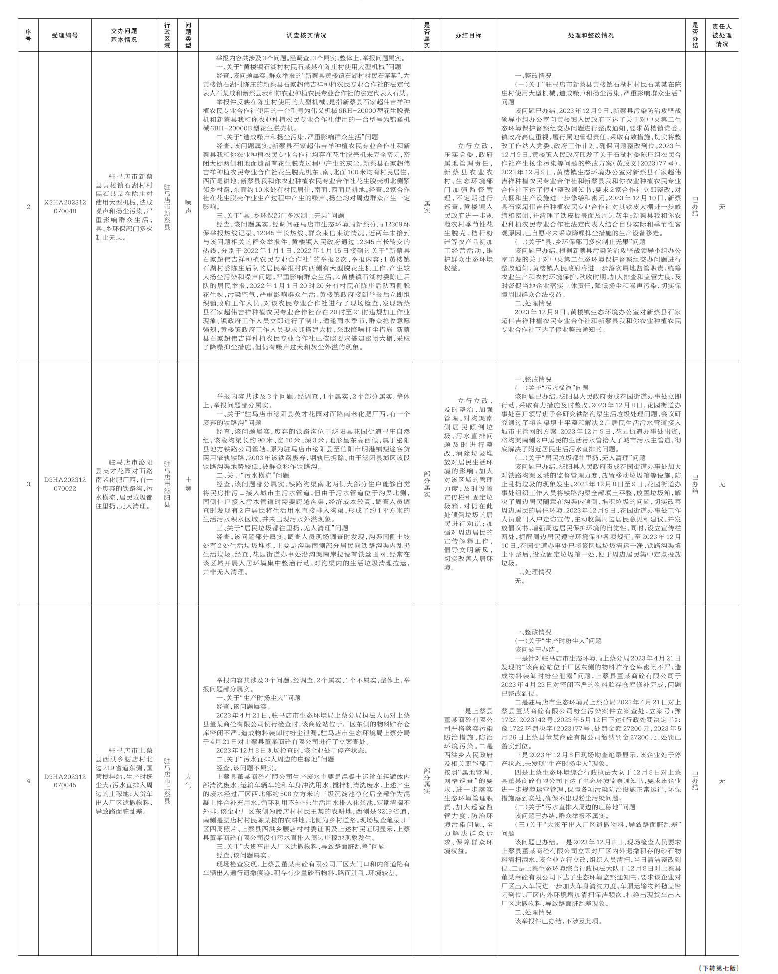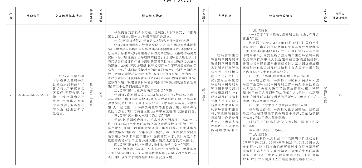 12月8日,中央第二生态环境保护督察组向我市交办第十六批7个群众举报件,截至12月18日,已办结6件,阶段性办结1件,查处和整改情况已按要求进行公开,具体内容请查阅驻马店市人民政府网站
