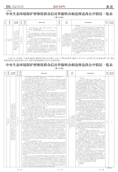 中央生态环境保护督察组群众信访举报转办和边督边改公开情况一览表