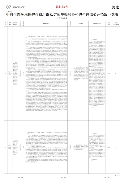 中央生态环境保护督察组群众信访举报转办和边督边改公开情况一览表
