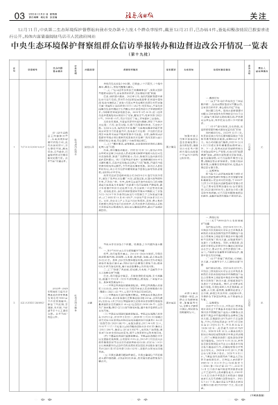 中央生态环境保护督察组群众信访举报转办和边督边改公开情况一览表
