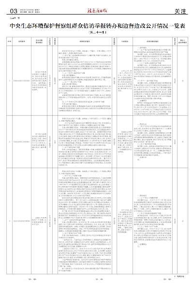 中央生态环境保护督察组群众信访举报转办和边督边改公开情况一览表