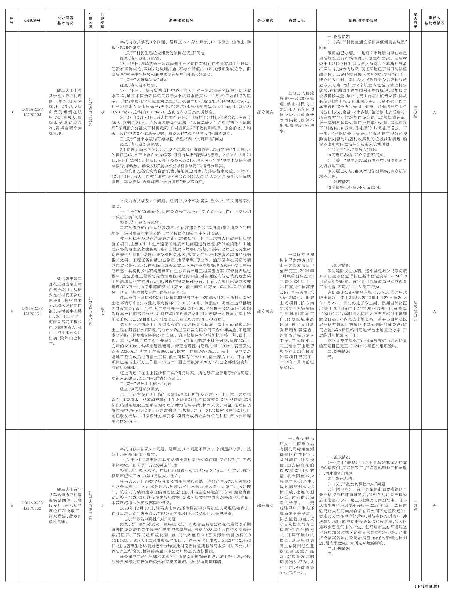 中央生态环境保护督察组群众信访举报转办和边督边改公开情况一览表