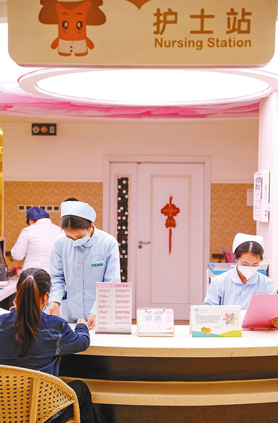 2023年12月31日,贵州省六盘水市妇幼保健院新生儿科的护士在护士站工作。