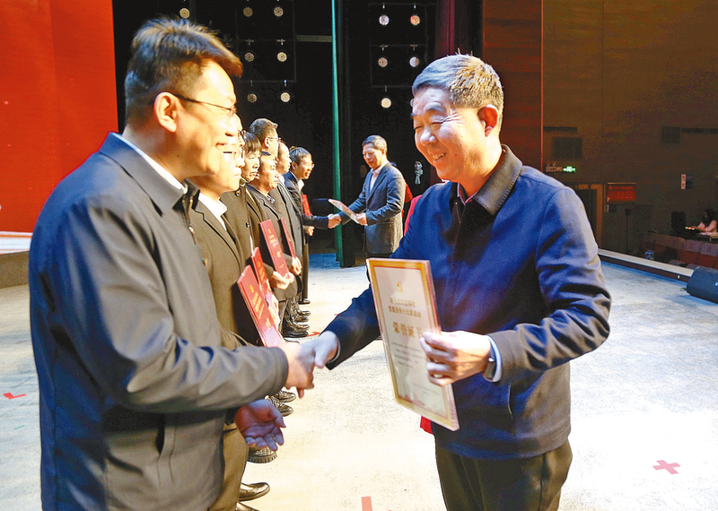 观看展演活动的省委直属机关工委领导和市领导为获奖单位代表颁奖。