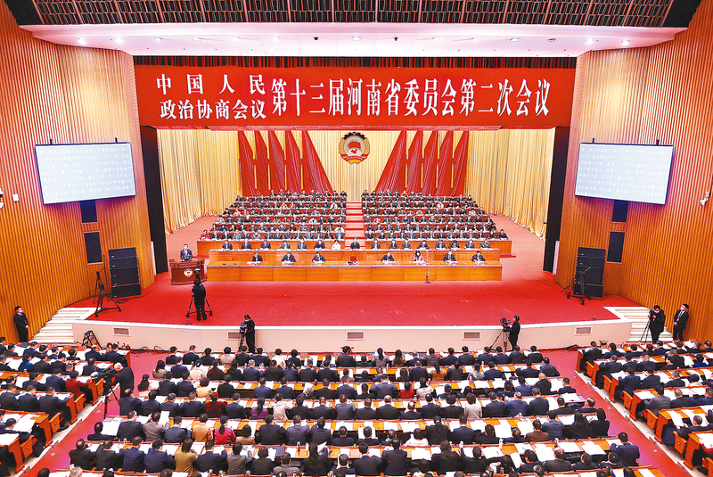 1月27日上午,中国人民政治协商会议第十三届河南省委员会第二次会议在省人民会堂开幕。 河南日报记者 董 亮 杜小伟 蔡迅翔 许俊文 摄影报道 本报讯(河南日报记者 李 点)1月27日上午,在雄壮的中华人民共和国国歌声中,中国人民政治协商会议第十三届河南省委员会第二次会议在省人民会堂隆重开幕。