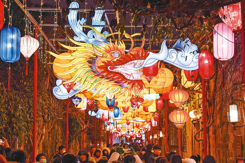 这是在南京老门东历史文化街区展示的长龙花灯(1月21日摄)。