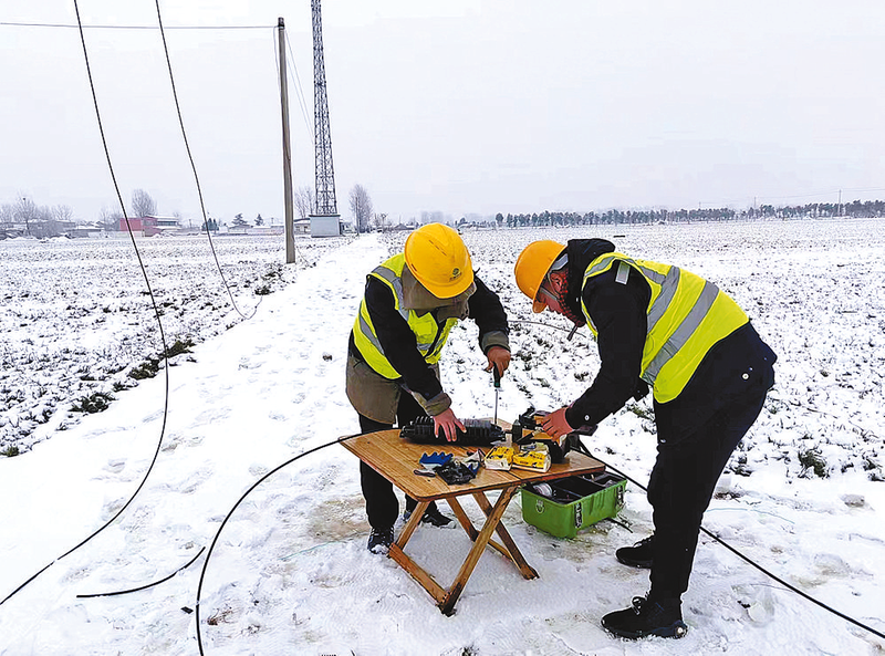 近日,受大雪影响,驿城区胡庙乡臧集村宽带出现故障,驻马店移动公司装维人员冒着风雪赶赴现场抢修,经过逐个段落排查后,准确定位故障原因,迅速处理宽带分支故障,全力守护通信网络安全通畅。