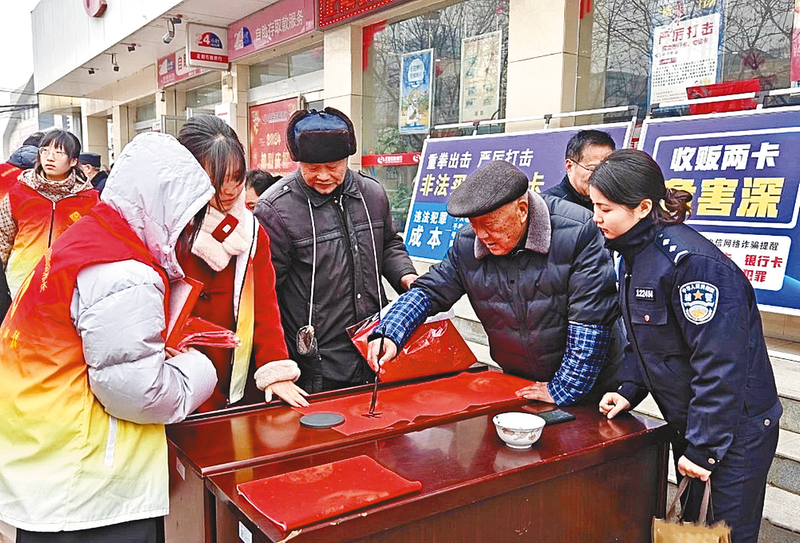为弘扬传统文化及宣讲反诈防诈知识,近日,正阳县公安局、县文联联合农商银行举办“翰墨飘香 福送万家”送春联活动,在为群众送去新春祝福的同时积极普及反诈常识,切实增强群众反诈意识。
