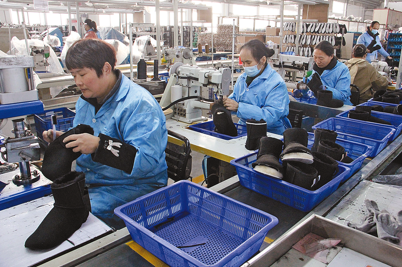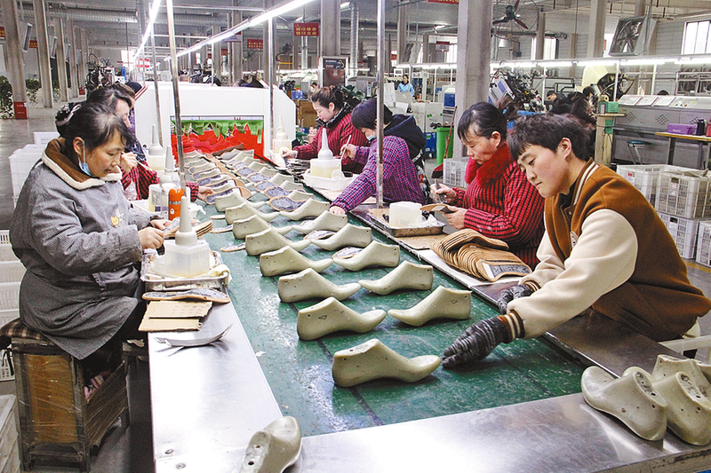 日前,河南隆祺鞋业有限公司员工在赶制产品。该公司是市服装制鞋产业链链主企业,总占地400余亩,总投资10亿元,生产线包括传统冷粘生产线和世界先进的自动注塑生产线,产品涵盖雪地靴、家居保暖鞋、时尚单鞋、休闲鞋、运动鞋等,设计每年产能800万双,产品供不应求。
