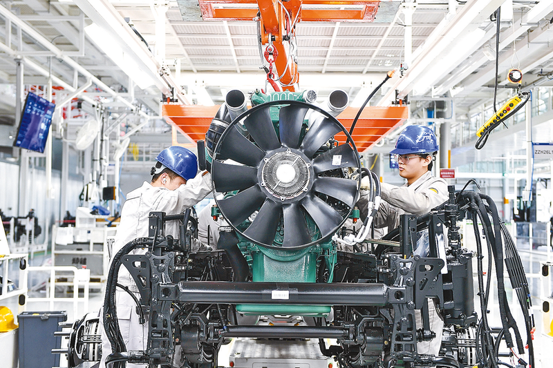 2月19日,工人在位于吉林省长春市的一汽解放J7整车智能工厂装配车辆。