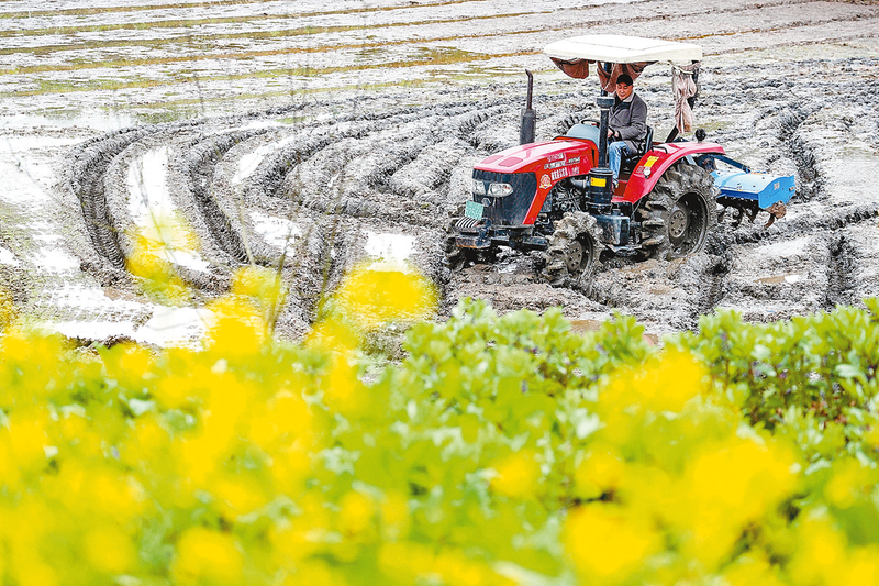 3月3日,四川省华蓥市永兴镇马架坪村农民用旋耕机耕整农田。惊蛰将至,各地农民抢抓农时忙碌在田间地头。新华社发