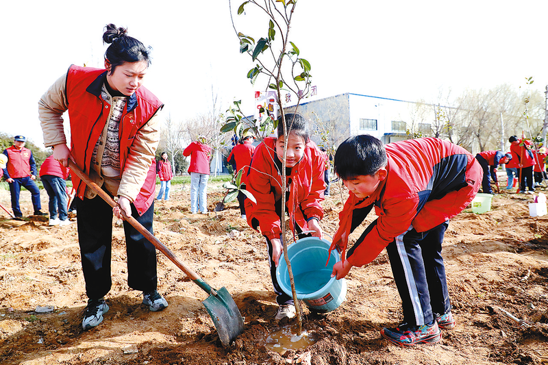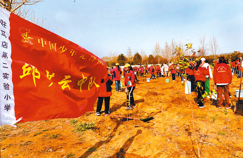3月9日,在第46个植树节来临之际,驻马店第二实验小学组织党员、共青团员代表和少先队员代表前往三秋醋博园开展师生植树活动,增强师生植树造林、绿化环境、共建美丽家园的意识。