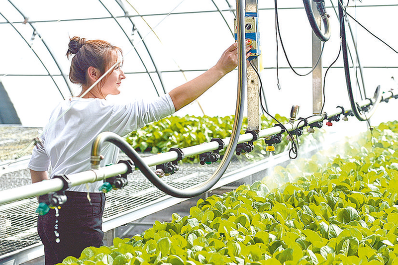 在新疆阿克苏市阿依库勒镇蔬菜基地,种植户操作喷淋设备为幼苗浇水(3月22日摄)。 新华社记者 丁 磊 摄