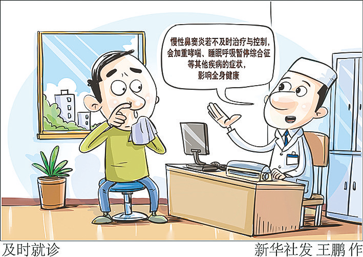 慢性鼻窦炎若不及时治疗与控制,会加重哮喘、睡眠呼吸暂停综合征等其他疾病的症状,影响全身健康。 新华社发 王 鹏 作