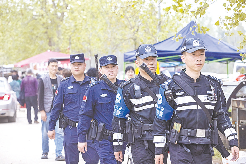 4月11日,盘古文化节在泌阳县盘古山风景区开幕。该县公安局提前谋划、周密部署、全警联动,采取定人、定点与流动巡逻相结合的方式,最大限度将警力放在重点区域、重点路段和人员密集场所,全面提升见警率,切实增强群众安全感。通讯员 茹嘉祎 摄