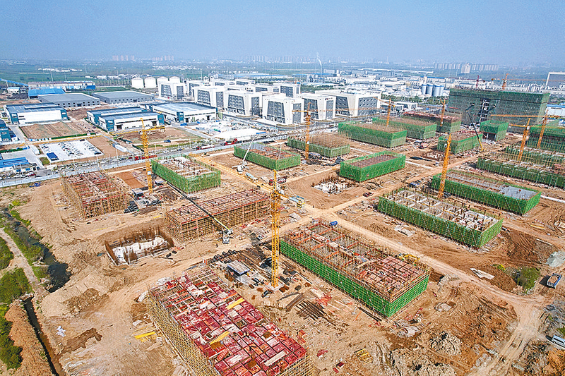 “中国药谷”超级工厂项目是河南省“三个一批”重点项目之一,共分两期。项目一期,占地202亩,总建筑面积12.3万平方米,累计施工产值1.87亿元,目前已有6家企业入驻。项目二期,占地319亩,总建筑面积14万平方米,累计施工产值1.31亿元,目前21栋单体建筑施工已全面铺开,其中生产检测楼、中央控制室主体结构已封顶。