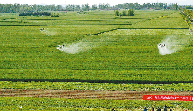 谷雨时节,正值麦田管理的关键时期。为加快农业新设备新技术推广应用,确保夏粮再夺丰收,4月18日,市农机中心在确山县刘店镇赵洼村举办全市春耕生产农机作业现场演示会。大疆、极飞两个品牌的不同款型无人机同台竞技,进行了喷洒作业。