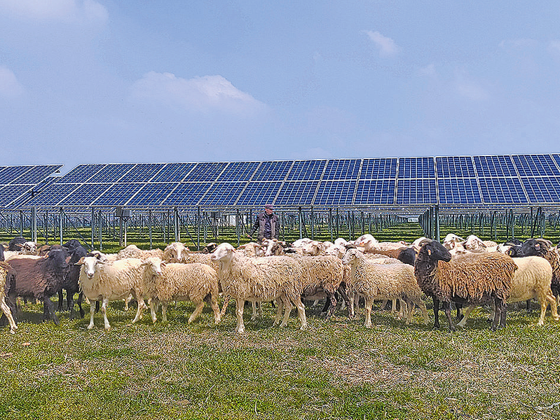 4月17日,村民在大林镇江湾村光伏发电基地牧羊。正阳县依托畜牧业优势,借助分布式光伏发电,探索“建立清洁能源+肉牛肉羊养殖发展”新模式,实现生态效益和经济效益双丰收,助推乡村振兴。