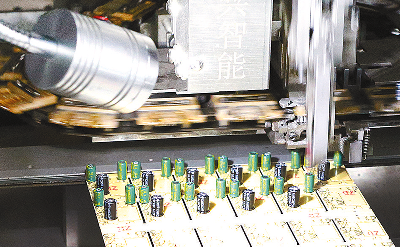 4月19日,在河南铁甲科技股份有限公司生产车间内,员工正检查产品电路板质量。同时,AI、DIP等全自动生产线马力全开,赶制订单产品。