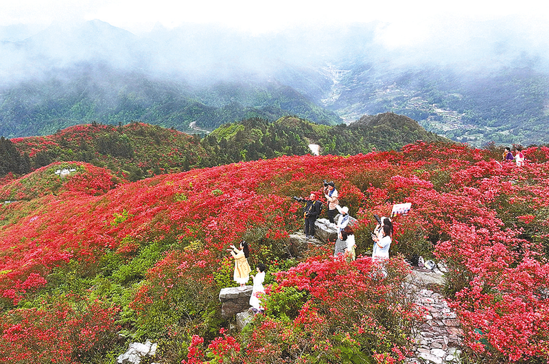 近日,贵州多地高山杜鹃花竞相绽放,绚丽多彩的杜鹃花娇艳迷人,吸引各地游客纷至沓来。近年来,贵州各地因地制宜,以花为媒,打造鲜花经济,让“花旅产业”融合发展,成为助力群众增收、带动乡村经济发展的富民产业。 新华社发