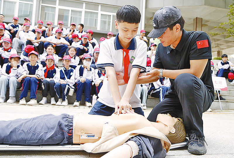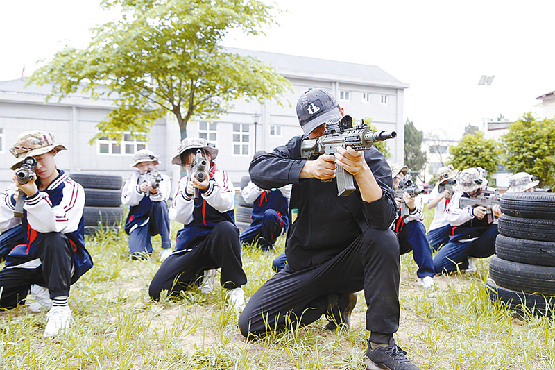 “立正”“稍息”“齐步走”……一声声口令、一个个动作,军事拓展训练场上闪耀着学生们努力的身影;真人射击、山地运动现场,同学们在教官的指导下认真练习瞄准动作,分组进行对抗,磨砺自我挑战的能力与勇气;伤者救援环节,同学们学习止血、包扎、固定、搬运等应急处理方法,提升生存技能,培养面对危险时具有冷静思考的能力;感恩教育活动,让大家懂得孝顺父母、尊敬师长、关爱同学、感恩社会;自编自导自演的文艺晚会,让教官见识了同学们的多才多艺。