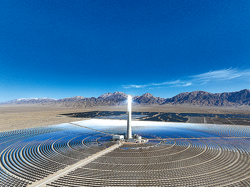 这是4月23日在青海省海西蒙古族藏族自治州德令哈市光伏(光热)产业园拍摄的光热电站(无人机照片)。近年来,青海省海西蒙古族藏族自治州德令哈市依托丰富的光照资源、广阔的土地资源,制定新能源产业布局,加速推进大型光伏、光热基地建设,推动柴达木盆地经济发展绿色转型。 新华社记者 张 龙 摄