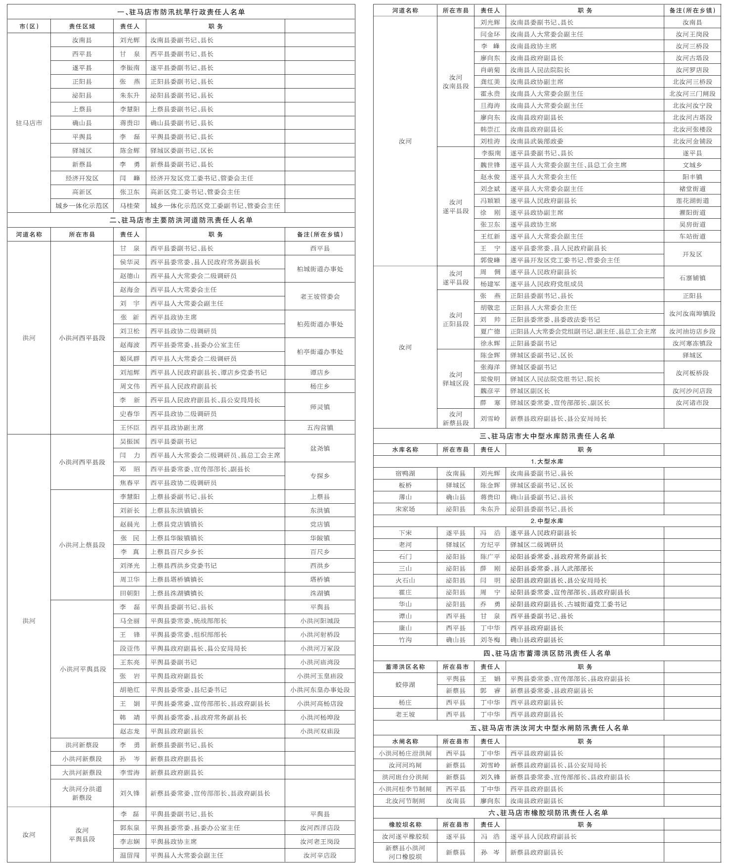 附件:驻马店市重点防洪工程防汛抗旱行政责任人名单
